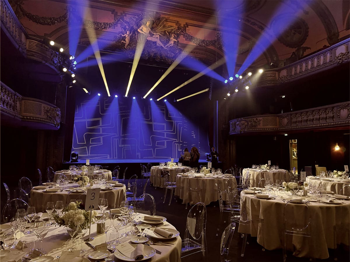 La soirée a débuté par un cocktail convivial, propice aux échanges et au networking, avant de se poursuivre par un dîner assis soigneusement orchestré dans l’écrin du théâtre.